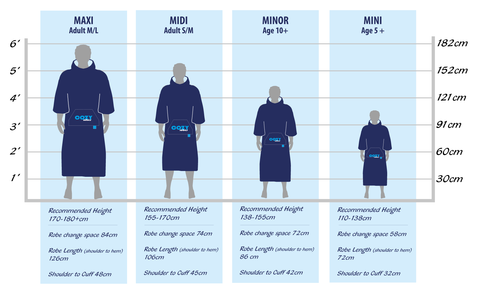 The 'Minor' is reccommended for children 110 - 155cm tall or from 10 years old upwards. They have ample space inside for getting changed while outside or will keep you warm untill you get home.
